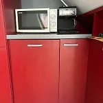 The property features a kitchen which is completed with a microwave oven, a fridge, and kitchenware. The nearest Avtostantsiya Knyazhevo bus stop is within walking distance of this 1-bedroom apartment.